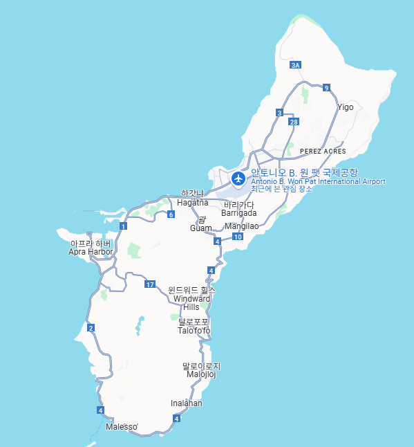 괌은 미국령 마리아나 제도의 가장 큰 섬으로, 필리핀 해와 태평양의 경계에 위치해 있습니다.