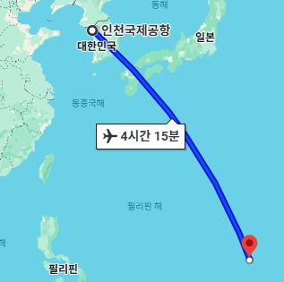 괌은 한국보다 1시간 빠릅니다. 한국이 오후 2시일 때 괌은 오후 3시입니다.
